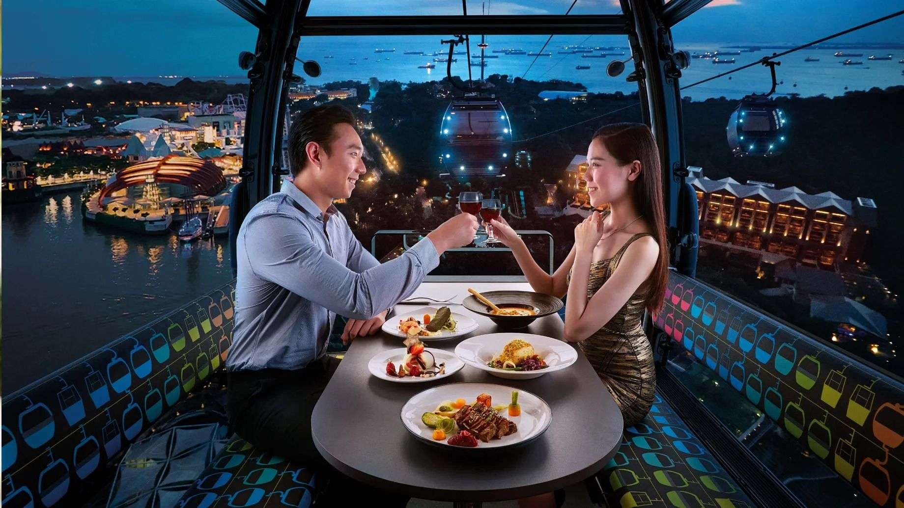 There are three different types of experiences in cable car Sky dining Singapore which you can avail yourself as visitors:-- Fly Me To Japan Cabin – You will experience a 4-course country-themed cabin that serves popular Japanese-inspired dishes.- Singapore Flavors Cabin – You would get a bento set that features seven of Singapore’s authentic local dishes.- Champagne Cabin – Here, you would be able to enjoy a bottle of champagne and a delectable tapas snack platter.In addition to this, seasonal Cable Car Dining experiences are available for special occasions.